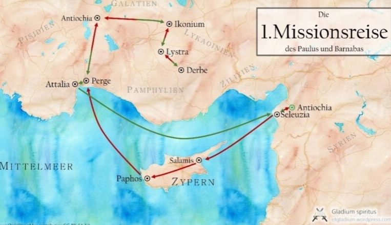 s Agrippa geschrieben steht, welcher in der Geschichtsschreibung mit dem Jahre 44 n. Chr. angegeben wird.n Jerusalem erzählte Paulus den Ältesten von seiner Bestimmung, den Nationen zu predigen. Diese gaben Barnabas und Paulus den Segen unter den Nationen zu predigen, während sie selbst unter den Beschnitten die Botschaft verkünden wollten (Gal.2,7-9). Zurück in Antiochia wurden Paulus und Barnabas vom Heiligen Geist auf ihre erste Missionsreise geschickt (Apg.13,2-4).